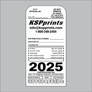 Depending on the layout of your inspection tag, your adhesive inspection service tag can identify class of extinguisher and substances used. Certainly your company name an