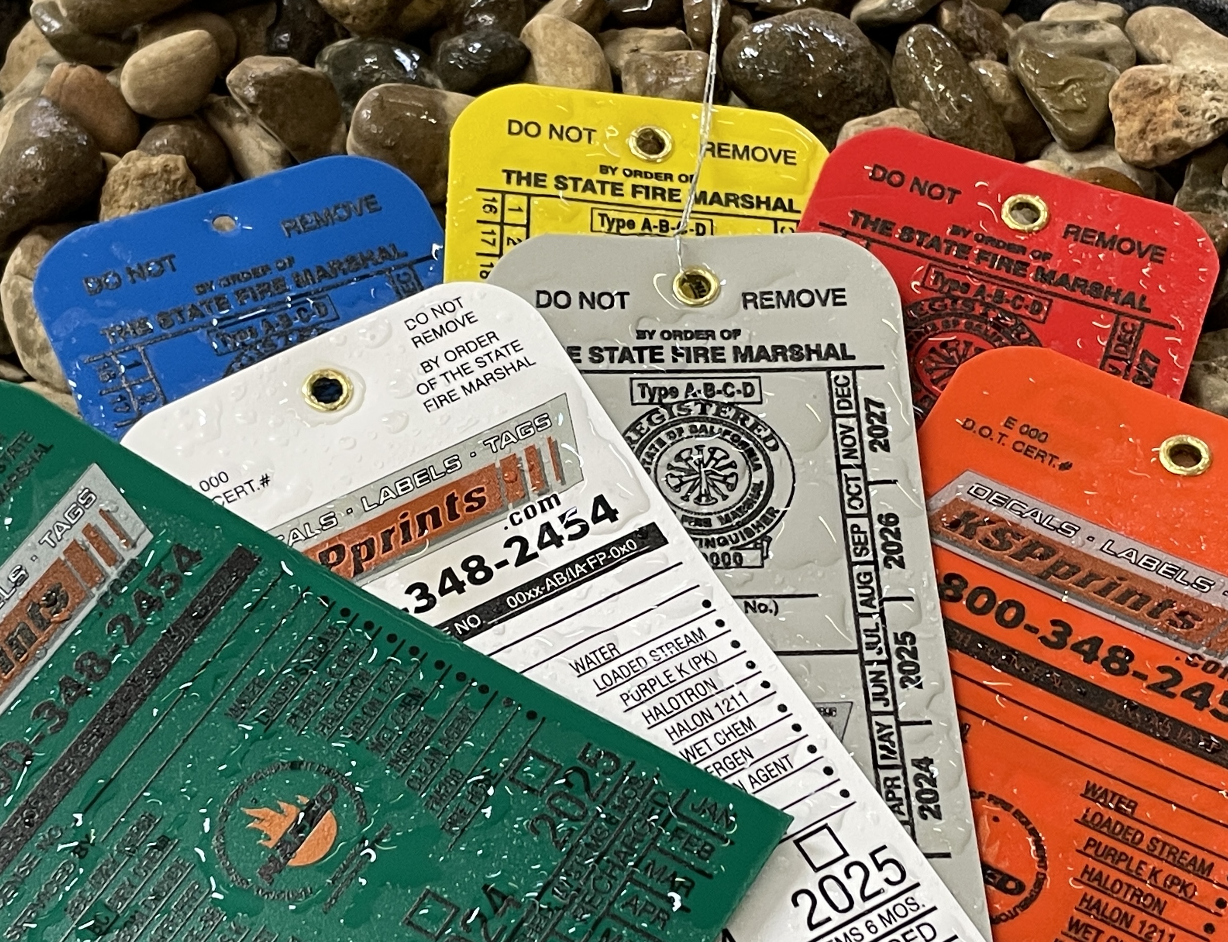 Above all, safety matters! Kewanna Screen Printing has helped Fire Safety companies and industrial customers in the US and Canada since 1961. Therefore our customer service representatives understand your unique needs and are ready to help customize fire safety labeling solutions and weather proof extinguisher tags or collars today. For instance our fire safety labeling solutions include but are not limited to: