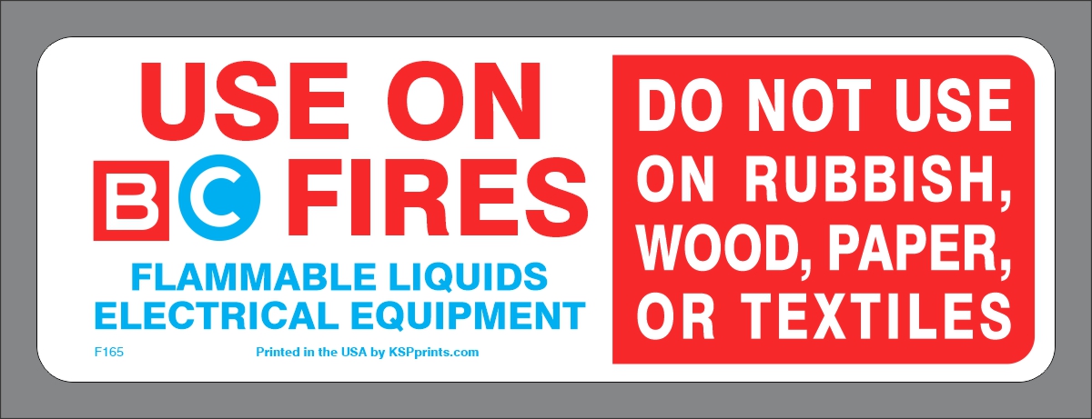 Knowing which extinguisher to use on a particular type of fire is as important as having an extinguisher to begin with. Extinguishers put out fires and save lives. However, using the wrong class of extinguisher can cause extreme flashes or large flames. For instance, you could be burned or even electrocuted depending on the circumstances. Hence the importance of classification labels. This classification BC label can stick right to your fire extinguisher so there is no mistake. To clarify, this label says to use this extinguisher on flammable liquids and electrical equipment fires. The best inks are printed on outdoor grade vinyl with hi-tack adhesive. As a result, these class BC fire labels will be there when you need them.