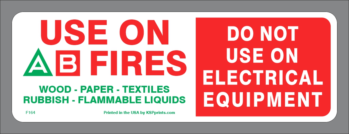 Knowing which extinguisher to use on a particular type of fire is as important as having an extinguisher to begin with. Extinguishers put out fires and save lives. However, using the wrong class of extinguisher can cause extreme flashes or large flames. For instance, you could be burned or even electrocuted depending on the circumstances. Hence the importance of classification labels. This extinguisher classification AB label can stick right to your fire extinguisher so there is no mistake. To clarify, this label says to use this extinguisher on wood, paper, textiles, rubbish, and flammable liquids fires. The best inks are printed on outdoor grade vinyl with hi-tack adhesive. As a result, this classification AB fire label will be there when you need them.