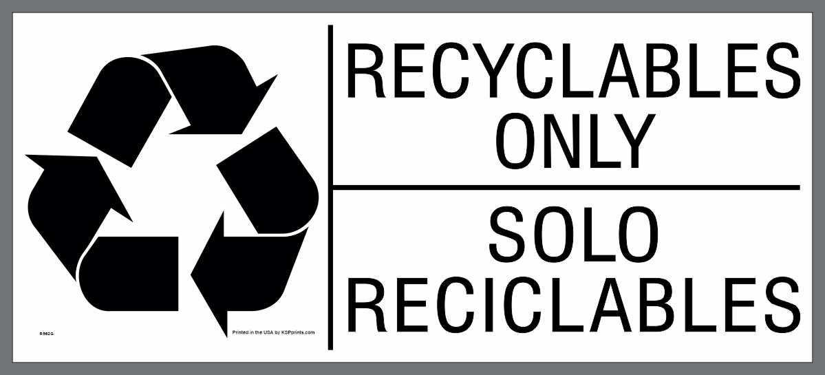 • Text: RECYCLABLES ONLY SOLO RECICLABLES