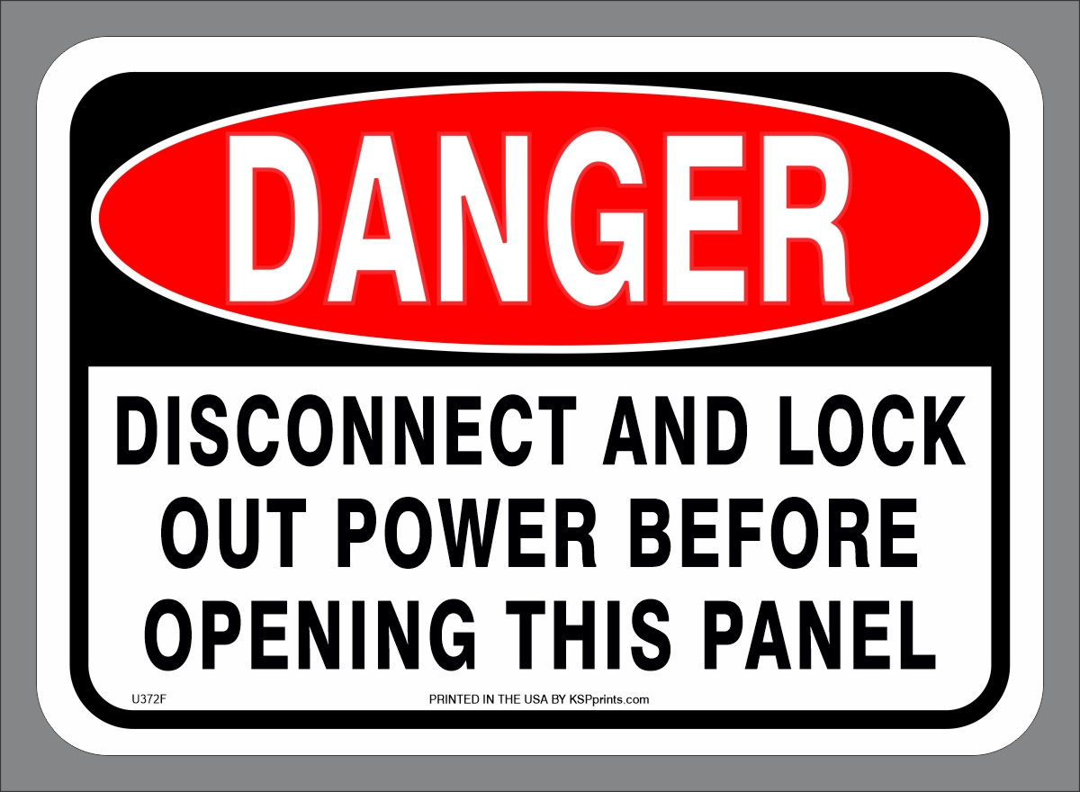These decals remind people of lockout tagout safety procedures. Specifically, this lockout reminder sticker instructs disconnecting and locking out power prior to opening the panel.  Electrical safety stickers used in LOTO policy and procedures keep equipment from being powered on during maintenance or repair.  Further, they reduce the risk of unexpected power sources.  Our LOTO stickers are printed with the best inks on outdoor grade vinyl.  As a result, they hold up to cleaners and industrial surroundings.  The hi-tack adhesive assures these stickers stay where put.