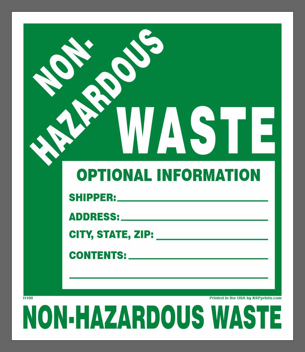 Alternately, if this non hazardous waste label doesn’t say exactly what you are looking for check out similar container stickers. For instance we have a variety of hazardous waste decals, biohazard stickers and even residual waste.