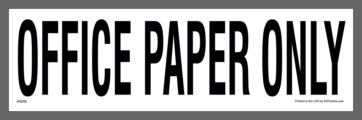 These Office Paper only stickers help in the sorting of your waste stream management plan. When combined with recycle or recyclables only stickers you are telling your customers where to recycle. Specifically that this is an office paper recycling container and to recycle only no trash. Printed on outdoor grade vinyl with hi-tack adhesives, like all of our container decals. In conclusion, this sticker or decal will withstand the elements and stay where you put it.