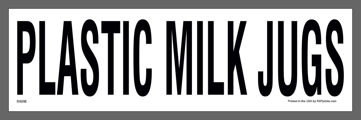 This plastic milk jugs sticker helps in the sorting of your waste stream management plan. When combined with recycle or recyclables only stickers you are telling your customers where to recycle. Specifically that this is a plastic milk jugs recycling container and recycling only no trash. Printed on outdoor grade vinyl with hi-tack adhesives, like all of our container decals. In conclusion, this sticker or decal will withstand the elements and stay where you put them.
