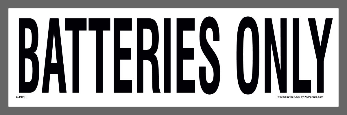 This batteries only sticker helps in the sorting of your waste stream management plan. When combined with recycle or recyclables only stickers you are telling your customers where to recycle. Specifically, that this is a Batteries Only recycling container and to recycle only no trash. Printed on outdoor grade vinyl with hi-tack adhesives, like all of our container decals. In conclusion, this sticker or decal will withstand the elements and stay where you put them.