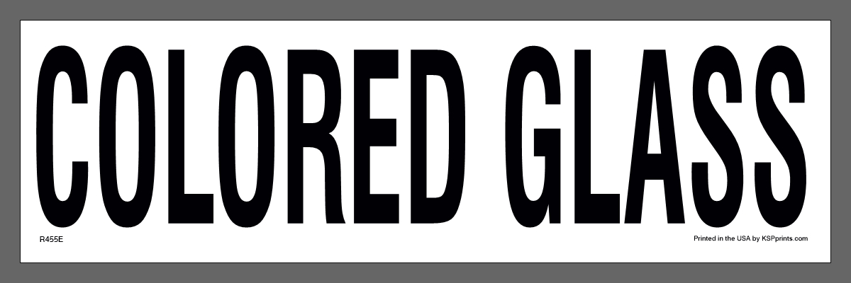 This colored glass recycling sticker helps in the sorting of your waste stream management plan. When combined with recycle or recyclables only stickers you are telling your customers where to recycle. Specifically that this is a colored glass recycling container and to recycle only no trash. Printed on outdoor grade vinyl with hi-tack adhesives, like all of our container decals. In conclusion, this sticker or decal will withstand the elements and stay where you put them.