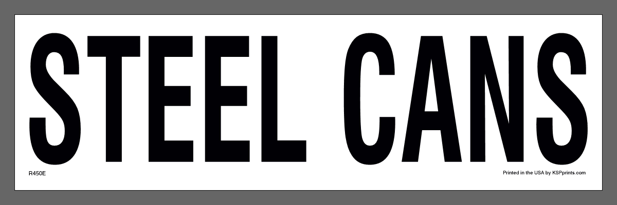 This steel cans container sticker helps in the sorting of your waste stream management plan. When combined with recycle or recyclables only stickers you are telling your customers where to recycle. Specifically, that this is a steel cans recycling container and to recycle only no trash. Printed on outdoor grade vinyl with hi-tack adhesives, like all of our container decals. In conclusion, this sticker or decal will withstand the elements and stay where you put them.