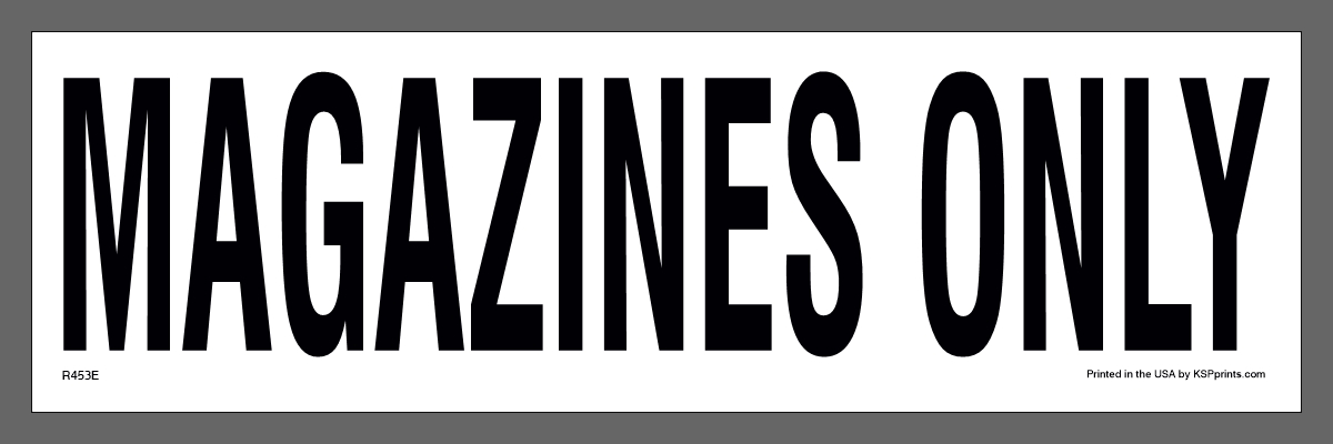 This MAGAZINES ONLY recycling sticker helps in the sorting of your waste stream management plan. Use this decal along with other paper recycling stickers or simply go with a mixed paper recycling sticker. When combined with recycle or recyclables only stickers you are telling your customers where to recycle. Specifically that this is a Magazines Only recycling container and to recycle only no trash. Printed on outdoor grade vinyl with hi-tack adhesives, like all of our container decals. In conclusion, this sticker or decal will withstand the elements and stay where you put them.