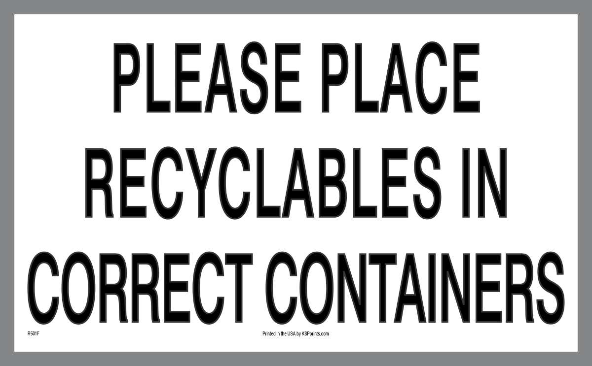 - Text: PLEASE PLACE RECYCLABLES IN CORRECT CONTAINERS